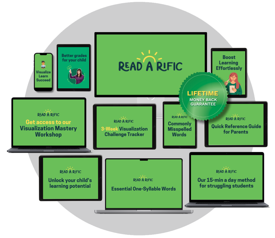 The Read-A-Rific workshop consists of an easy-to-follow video and worksheets so you can learn how to help your child learn visualization skills to improve spelling and following directions in 15 minutes a day. It also includes several video lessons from the Read-A-Rific Reading Comprehension Program.